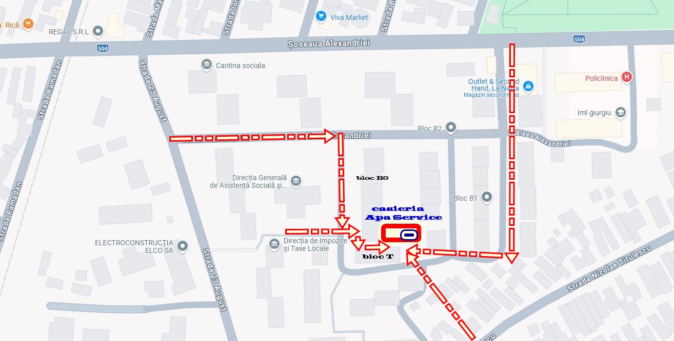 – de pe strada 23 august, pe Aleea Alexandriei apoi la dreapta, după DGASPC;