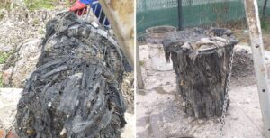 Tot ce vedeți acolo sunt șervețele umede, cârpe, pungi de plastic, scutece, resturi de mâncare și grăsimi , care au fost aruncat în toalete sau direct în canalizări și s-a adunat până au blocat complet conducta.